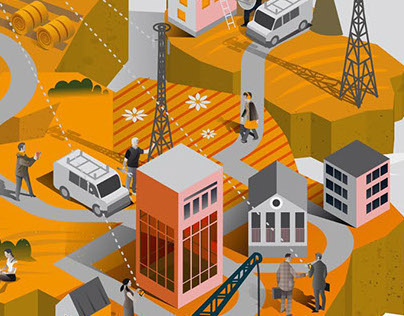 Nils-Petter was commissioned by Mediapartners NL to make an illustrated world map for Dutch mobile telecom company KPN. The illustrated map shows countries with the fastest and slowest internet connections. Client: KPN. Illustration: Nils-Petter Ekwall