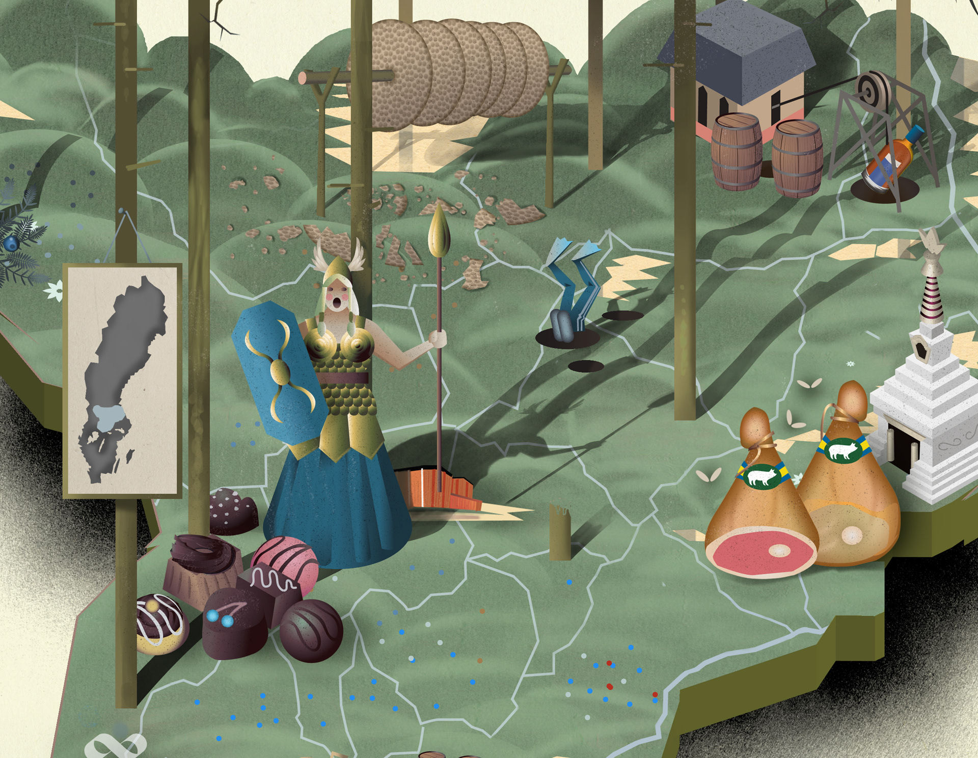 3–8. Bergslagen | Maps over mining district Bergslagen and its attractions (everything from deceased transexual bandoleros to closed goldmines and local food restaurants) | Client: Filter Magazine and Interest Group Bergslaget | 2010 & 2011