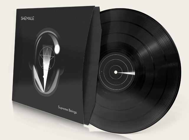 Record cover for UK based electro act Shemale on French record label Falco Invernale Records (FIR). This is Lovecraftian Cthulhu inspired dark electro angst pressed on black 12" vinyl. | 2009